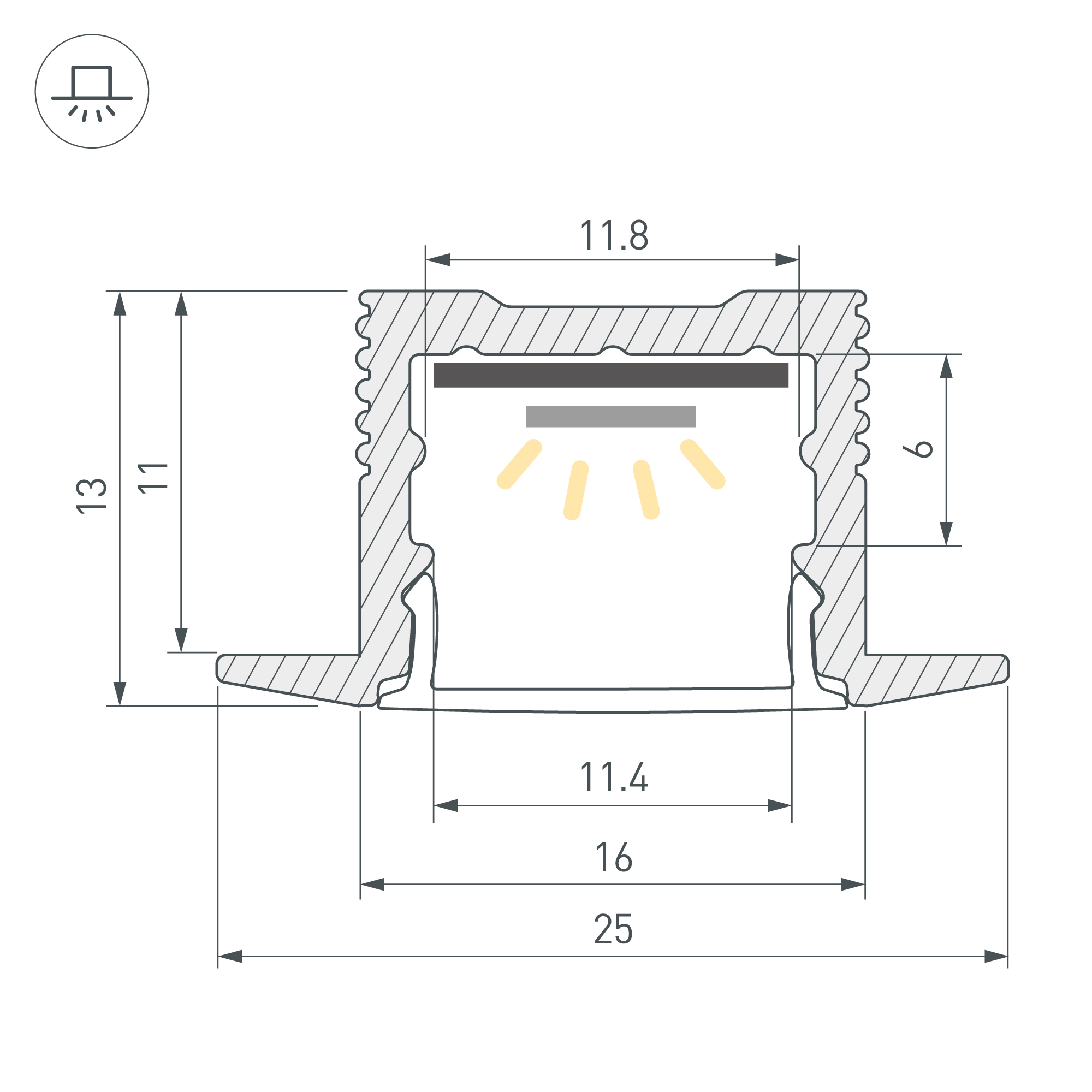 Встраиваемый профиль с накладным фланцем из анодированного алюминия для контурной подсветки интерьера. Габаритные размеры профиля составляют 3000 мм в длину, 25 мм в ширину и 13 мм в высоту. Площадка для установки светодиодных лент позволяет использовать ленту шириной до 12 мм и мощностью до 15,2 Вт/м. Это обеспечивает гибкость в выборе светодиодных лент и создает потрясающие световые решения. Экран, заглушки и другие аксессуары не включены в комплект и приобретаются отдельно. Цена указана за 1 метр профиля. Отличное решение для создания современных световых проектов.