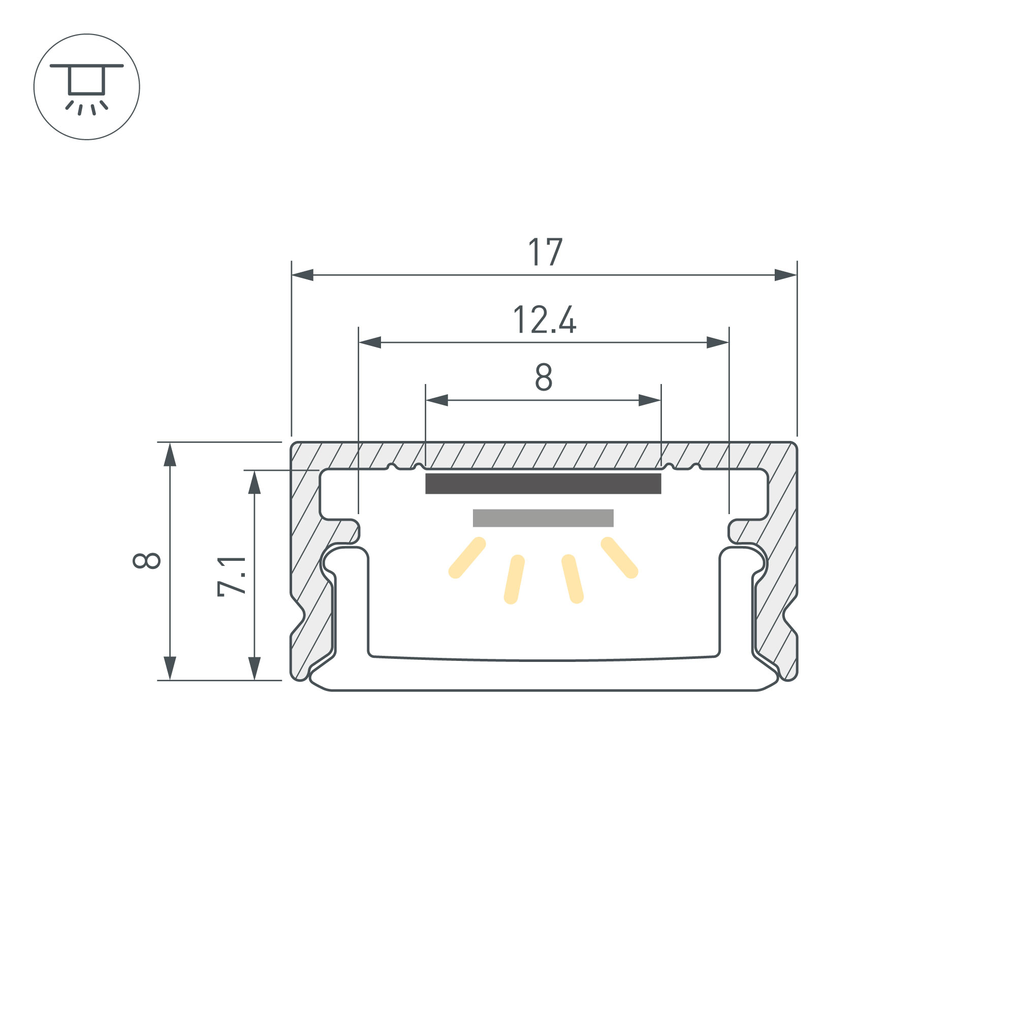 Набор для светодиодной подсветки ARL-KIT-SLIM с предустановленной светодиодной лентой - готовое решение для декоративного освещения интерьера. В комплект входят: накладной профиль из анодированного алюминия, матовый экран со светопропусканием 64,5%, заглушки и держатели, а также открытая светодиодная лента со свободной резкой шириной 8 мм и мощностью 14 Вт/м. Светодиоды SMD 2216 (200 шт/м) дневного цвета свечения (4000 К). Напряжение питания 24 В. Минимальный отрезок 5 мм. Габаритные размеры набора составляют 2000 мм в длину, 17 мм в ширину и 8 мм в высоту. Для создания из набора одного светильника необходимо использовать одну глухую заглушку и одну заглушку с кабелем 1 метра и разъёмом 5,5DC Female. При необходимости отрежьте часть профиля необходимой длины (минимальный отрезок – 5 мм). Разрезать ленту необходимо только в обозначенных местах, отступив от края профиля на 3-5 мм строго по линии резки. Цена указана за комплект.Отличное решение для создания современных световых проектов.