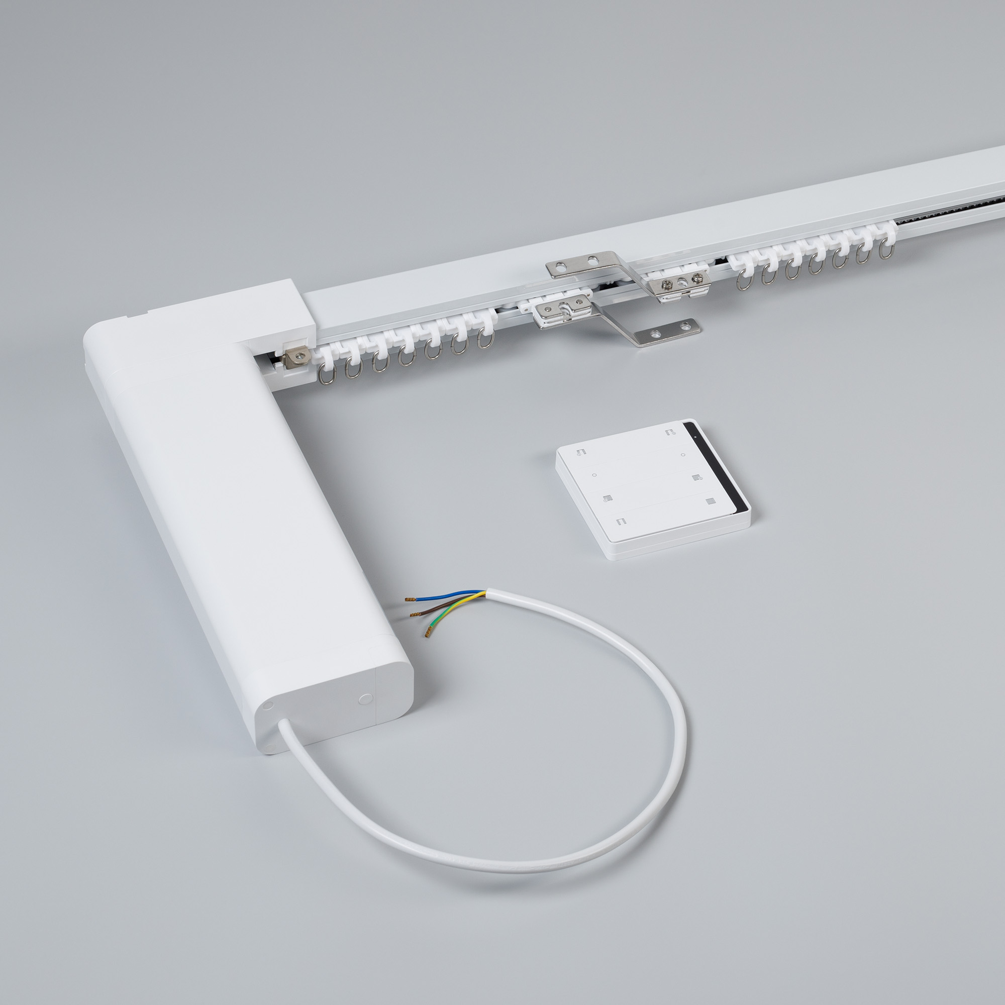 Полный комплект электрокарниза из металлического профиля с мотором. Независимое управление двух сторон, возможность сдвигать центр штор. Готовое решение для установки карниза, который будет управляться дистанционно панелью, либо вручную. Возможность выбора нужной длины благодаря наборным частям.