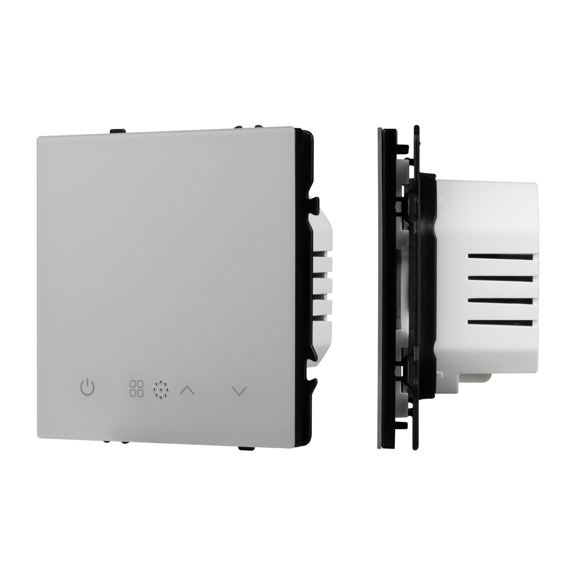 Терморегулятор совместим с рамками серии NOBE, создает утонченный минималистичный вид. Скрытый тип монтажа позволяет гармонично встроить в интерьер любого современного дизайн-проекта. Видимая часть механизма выполнена из глянцевого поликарбоната цвета никель, что придает изделию приятные тактильные ощущения и стильный внешний вид.
