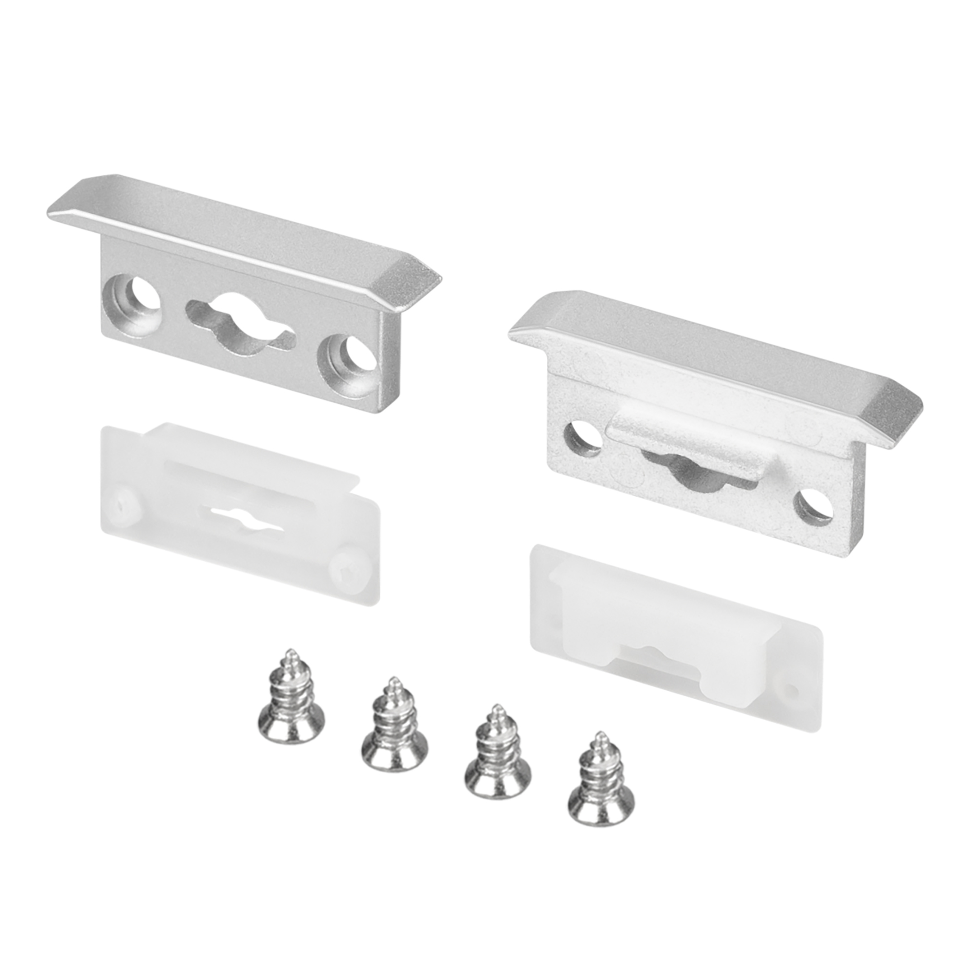 Серебристые заглушки с отверстием (2 шт.) для профиля FLOOR27-H11-F. Придают законченный вид светильнику, отверстия позволяют организовать вывод кабеля питания. В комплекте: заглушка c отверстием - 2 шт., силиконовая прокладка - 2 шт., винт - 4 шт. Цена указана за 1 комплект.