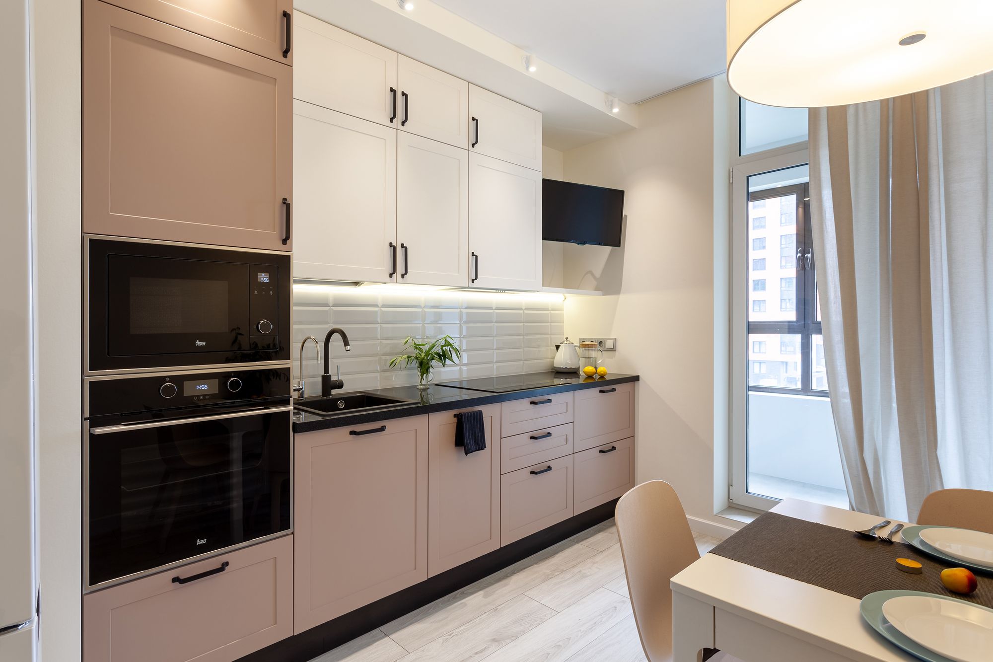 Две одинаковые по планировке квартиры, в которых применили разные цветовые решения и одинаковое освещение. Создание приятной и комфортной световой атмосферы доверили двум типам поворотных светильников. Встраиваемые светильники с узким углом излучения помогают создать акцентное освещение, направить свет на детали интерьера и выделить определенные зоны в квартире. Белый алюминиевый корпус светильников выполнен в современном лаконичном стиле и гармонично вписываются в интерьер. В каждой квартире одинаковые светильники с приятным теплым свечением и разной функциональностью: для декоративной подсветки или основного освещения.